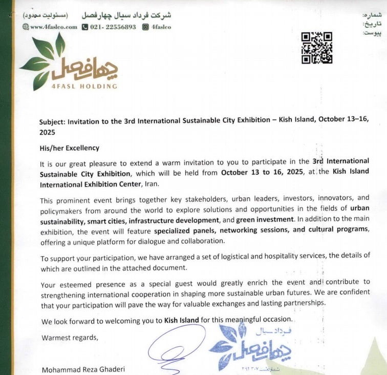 -نمایشگاه تخصصی شهر پایدار، در موضوعات توسعه پایدار، تاب آوری، زیست پذیری و هوشمند سازی شهری و چالش های اصلی دولت ها در این عرصه، از تاریخ 21 تا 24 مهرماه 1404 درجمهوری اسلامی ایران - جزیره کیش برگزار میگردد.